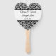 Este ventilador da pá de casamento é mostrado com um elegante impressão de damasco preto e branco e nomes de exemplo e data. Personalize este item e altere os nomes e a data para o que você precisa.
