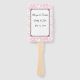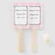 Este ventilador da pá de casamento é mostrado em um impressão de fundo floral de rosa claro com nomes de amostra e data, personalize e mude o texto para o seu.