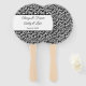Este ventilador da pá de casamento é mostrado com um elegante impressão de damasco preto e branco e nomes de exemplo e data. Personalize este item e altere os nomes e a data para o que você precisa.