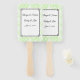 Este ventilador da pá de casamento é mostrado em um impressão de fundo floral verde da casa com nomes de exemplo e data, personalize e mude o texto para o seu.