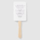 Programa de fãs retangulares com um design de flor de pássaro do paraíso. Escolha um papel branco ou um documento para personalizar com texto na frente e no verso. Os ventiladores serão colados juntos após a compra, ou você poderá pagar extra para que sejam pré-montados. O texto é púrpura escura com uma imagem de flor tropical amarela solteiro no fundo.