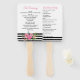 Fã do programa de casamento de na moda, feito em branco, com listras pretas e brancas, na parte inferior e bonito cor-de-rosa decorando a parte inferior da frente, do ventilador. Personalize o texto para o dia do seu casamento. Os produtos correspondentes estão disponíveis.