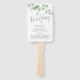 Este elegante fã do programa de casamento botânico mostra minha mão original pintada com as folhas de cor d'água de eucalipto. O verde é feito em tons verdes em um fundo branco nítido. Os nomes da noiva e do noivo e a linha cronológica do programa de casamento são definidos na escrita à mão e na tipografia sans serif. Este design de programa de cerimônia de dupla face é uma escolha botânica para casamentos de celeiros rústicos, casamentos de campo e casamentos de jardim. Projetado por Victoria of VG Invites. Para mais informações, visite www.zazzle.com/vginvites