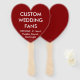 FANS (conjuntos de 10) para Vazio de Modelo, gravados personalizados e personalizados, com CORAÇÃO VERMELHA de 6". Design, crie, faça o seu. Sua foto de casamento, imagem, mensagem, texto, noiva e nomes de noivos, logotipo, gráficos, em impressão de cor de cheio, projetado individualmente em ambos os lados do ventilador. Diâmetro de 5,75". Disponível em estoque de papel branco e náutico (personalize para qualquer cor). É necessário um conjunto simples - alças de madeira e 4 pontos de cola por ventilador incluídos (disponível pré-montado para uma sobrecarga). Arredondado, em forma de coração, remo ou retângulo disponíveis. Melhor para casamentos, mas também excelente para um doce aniversário de 16 anos, Quinceanera, ou qualquer evento quente, de verão ou ao ar livre, e para uso de marketing ou promocionais corporativos e empresariais.