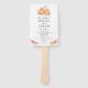 Ventiladores de mão do programa de núpcias de outono com abóbora e design floral. A ordem da cerimônia é exibida na frente, e os detalhes da festa de casamento estão no verso.