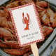 Mantenha-se legal este verão com este ventilador de mão apresentando uma ilustração de lagosta desenhada à mão, combinada com o clássico gingham vermelho no topo da elegante tipografia personalizada. Seja uma festa de noivado, festa de aniversário, família anual se juntando, uma fervura de lagosta é sempre uma boa ideia, cara!