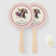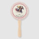 Ventiladores de mão de marfim do partido Elegante apresentam um cavalo de corrida e jóquei em aquarela no caminho para a linha de chegada com uma borda de padrão vermelho. CORRESPONDENTE a itens na nossa coleção.