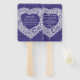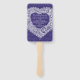 Leque de programa de cerimônia de casamento é parte do coração de renda branca no conjunto de casamento de tecido gráfico falso azul marinho. Desenho e design original de renda por www.mylittleedenweddings.com na zazzle.
