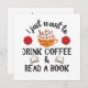 Uma caneca de café engraçada decorada com uma corrente de lâmpada e o ditado engraçado: Eu só quero beber café e ler um livro.