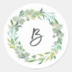 Use este design de aspecto limpo com uma coroa de lenços verdes de eucalipto e uma letra B de monograma para várias ocasiões — favor bolsas, selos de envelopes, etc.