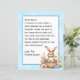 Adicione o nome do seu filho a esta carta personalizável do coelho da Páscoa. Coelhinho de Páscoa bonito em fundo azul de flores.