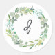 Use este design de aspecto limpo com uma coroa de lenços verdes de eucalipto e uma letra D de monograma para várias ocasiões — favor bolsas, selos de envelopes, etc.