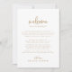 Estes rotineiros guiões de ouro bem-vindos itinerários de cartas e cartas de mapa são perfeitos para um saco de boas-vindas de casamento de destino. O simples e moderno design de ouro e branco apresenta uma única caligrafia manuscrita branca com estilo de boho minimalista contemporâneo. Personalizável em qualquer cor. Mantenha o design mínimo e simplista, como está, ou personalize-o adicionando seus próprios gráficos e trabalhos de arte. A frente do cartão apresenta uma carta e um itinerário bem-vindos. Inclua um mapa do seu recurso com locais importantes anotados na parte traseira da placa.