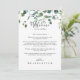 Esta carta de boas-vindas do casamento de folhagem verde é perfeita para um casamento simples. O design apresenta galhos e folhas botânicas elegantes e desenhadas a aquarela, desenhadas à mão, em belos buquês e padrões geométricos. Personalize a frente com uma mensagem de boas-vindas para seus convidados e seus nomes. Personalize as costas com a programação de eventos e outras informações úteis.