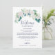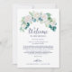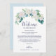 Estas clássicas flores brancas, carta de boas-vindas e cartas itinerárias são perfeitas para um casamento na primavera. O elegante design floral apresenta marfim macio e rosas brancas, peonias e crisântemo com toques de flores azuis de cor azul-rosada e folhagem verde. A frente da carta apresenta uma carta de boas-vindas e a parte de trás da carta apresenta o itinerário do casamento. Estas notas são perfeitas para casamentos de destino e bolsas de boas-vindas de hóspedes.