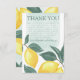 Este cartões de agradecimentos de limão foi projetado para combinar com nossa coleção de limões! Este tema é perfeito para qualquer gênero, menino ou menina, com tons suaves de amarelo e verde. Este design apresenta limões aquarelas com sotaque de arco. Os fundos têm limões e verde perfeitos para primavera ou verão. Para editar com os detalhes do evento, clique em "Personalizar" ou "Detalhes" e, em seguida, elimine o texto pré-preenchido e substitua-o pelo seu próprio texto. Por favor, não hesite em contactar-nos se tiver quaisquer perguntas.