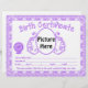 Letra do certificado de nascimento do bebê unisex