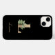 A capa de telefone preta elegante apresenta um monograma botânico dourado no centro.