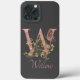Bonito brilho inicial/letra W, cor-de-rosa, com folhas de ouro e espirais e cobertura de borboletas. Personalizar com nome adicionado na fonte de script rosa. Cinzas de carvão
