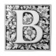 Letra Iluminada Medieval B Cerâmica Azulejo Um vetor preto e branco da letra em um elaborado estilo medieval, criado no estilo de Albrecht Dürer. O design é um quadrado com um grande motivo floral central rodeado por padrões e espirais geométricos simétricos.