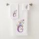 Design apresenta Monograma mais Flores num Design Floral. Inicial é a letra G. Conjunto de toalhas pessoais.