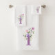 Design apresenta Monograma mais Flores num Design Floral. Inicial é a letra I. Conjunto de toalhas pessoais.