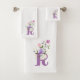 Design apresenta Monograma mais Flores num Design Floral. Inicial é a letra R. Conjunto de toalhas pessoais.