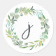 Use este design com aspecto limpo com uma coroa de lenços de eucalipto verde e uma letra J monograma para várias ocasiões — favor bolsas, selos de envelopes, etc.