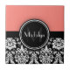 Para alterar a fonte, a cor, o tamanho e a posição da letra e do nome monogramados, basta clicar no botão Personalizar!. Design preto e branco elegante, giro e feminino, com um bloco colorido de rosa-coral vibrante no topo. Uma etiqueta de estrutura de nome de na moda círculo de tendência é apresentada no centro deste design personalizado onde você pode personalizar facilmente sua letra de monograma inicial pessoal e seu nome personalizado com uma fonte de texto na moda. Este presente de padrão feminino legal está disponível numa variedade de cores.