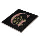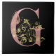 Bonito brilho inicial/letra G cor-de-rosa com folhas e espirais douradas e cobertura de borboletas em fundo preto