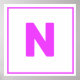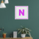 Letra roxa N alfabeto em fundo branco com borda roxa. Ajude o seu pequeno a aprender o alfabeto com esta letra N design.