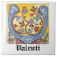 Letra V Iluminada Azul Medieval e Vermelha Ivy