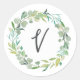 Use este design de aspecto limpo com uma coroa de lenços de eucalipto verde e uma letra V monograma para várias ocasiões — favor bolsas, selos de envelopes, etc.