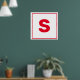 Letra vermelha alfabeto S em fundo branco com borda vermelha. Ajude o seu pequeno a aprender o alfabeto com esta letra S design.