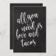 Um letreiro de casamento elegante e moderno, apresenta o texto "Tudo o que você precisa é amor e tacos" em uma fonte de letra extrovertida, a textura da pincelada adiciona um sentimento espontâneo e divertido. A cor do fundo pode ser personalizada de acordo com as suas necessidades e preferências, por favor entre em contato se tiver algum pedido especial.