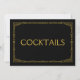 Sinal de casamento "Cocktails" em estilo art déco simples e elegante, personalizado com o seu próprio texto, apresenta uma moldura art déco dourada sobre um fundo preto.
