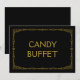 Sinal de casamento em estilo art déco simples e elegante "Candy Buffet", personalizado com o seu próprio texto, apresenta uma moldura art déco dourada sobre um fundo preto.