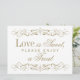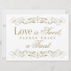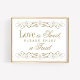 Direcione os convidados para a sua sobremesa ou mesa de lembranças com este letreiro "O Amor é Doce, Por Favor Desfrute de um Petisco" com trabalho de rolo dourado antigo. Bordas ornamentadas com filigrana emolduram o texto encantador em tipografia elegante, criando um toque final refinado para a sua estação de doces. O design clássico em dourado e branco coordena-se perfeitamente com o conjunto de papelaria completo com trabalho de rolo. Todo o texto é totalmente personalizável.