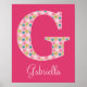 This Pink Floral Letter G Initial Poster is great for a kids room, also makes a fantastic Baby Shower gift! Some elements SheryKDesign.