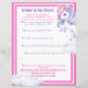 A "Letter to the Future" game for a magical birthday party featuring an adorable unicorn with wings in the clouds on a rainbow background.