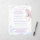 The "Letter to the Future" game for a magical birthday is decorated with a charming winged unicorn surrounded by sweet images of a magical castle, clouds, and festive garlands.