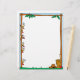 Esta engraçada carta de Ação de Graças apresenta um machado e um bloco cortante no canto inferior direito e vários perus espiando-se para fora da fronteira esquerda.