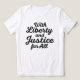 Seja alto para os valores americanos com isso Com liberdade e justiça para todos os T-Shirt. Uma maneira poderosa e na moda para expressar o seu apoio à liberdade, igualdade e direitos civis. Quer você esteja indo para uma comemoração de 4 de julho, se juntando a uma marcha pela justiça, ou apenas querendo fazer uma declaração ousada, esta camisa fornece uma mensagem clara enraizada no Penhor de Lealdade e na luta contínua por uma América mais justa. Apresentando uma angustiada bandeira americana e uma tipografia vintage ao estilo do protesto, é perfeita para aqueles que acreditam na liberdade e na justiça para todos - não apenas para alguns. Vista-o orgulhoso, vista-o alto.