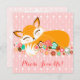 Estes convites doces & à moda do chá de fraldas caracterizam um filhote adorável da raposa do bebê adormecido em uma cama de flores. Edite com sua própria informação de evento na parte dianteira e na parte traseira {{o clique PERSONALIZA às cores de texto da mudança, pias batismais e para mais opções de edição!