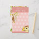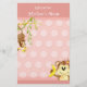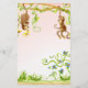 Este Conselho de Chá de fraldas para uma nova mãe mostra macacos adoráveis e caprichosos acolhendo seu novo pequeno para o mundo! A design da frente apresenta uma macaca com uma banana pendurada na cauda de um galho de árvore com videiras e outro macaquinho segurando uma banana com uma flor rosa e fofa no cabelo. O fundo é um grande padrão de bolinhas rosa-mole. O verso apresenta dois macacos, pendurados num galho coberto de vinha. Seus convidados chás de fraldas terão bastante espaço para escrever seus conselhos, já que ambos os lados têm espaço escrevendo. Há uma grande variedade de itens disponíveis para criar seu próprio decoro de chá, anotações, adesivos e muito mais!