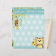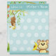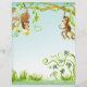 Este Conselho de Chá de fraldas para uma nova mãe mostra macacos adoráveis e caprichosos acolhendo seu novo pequeno para o mundo! A design da frente apresenta um macaco com uma banana pendurada na cauda de um galho com vinha e outro macaquinho segurando uma banana. O fundo é um grande padrão de bolinhas azul aqua. O verso apresenta dois macacos, pendurados num galho coberto de vinha. Seus convidados chás de fraldas terão bastante espaço para escrever seus conselhos, já que ambos os lados têm espaço escrevendo. Há uma grande variedade de itens disponíveis para criar seu próprio decoro de chá, anotações, adesivos e muito mais!