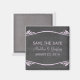Imã salve a data Chalkboard elegante e moderna, com um olhar de fundo sobre o quadro e um rico de espiral e deco de arte em roxo. Fácil de personalizar, simplesmente adicione seus detalhes de casamento. Clique em "Personalizar" para encontrar mais opções de personalização.