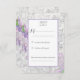 A abundância de flores lilás cria um fundo para esta placa vertical RSVP que tem espaço para requisitos especiais de dieta de seu convidado. Ou personalize-o para ajustado das suas necessidades de convite. Cinza pálida, lavanda e um toque de verde e rosa.
