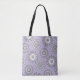 Um saco de totas com o meu Padrão Mandala 1 impresso na frente contra um fundo Lilac. Reverso e alças em preto simples.