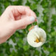 Lilly centraliza detalhes com gotas de chuva na pétala.